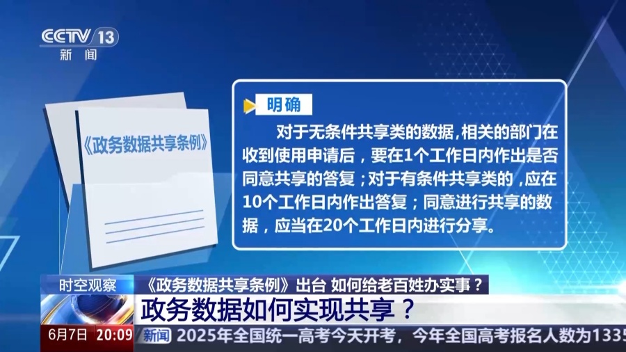 近日,《政務(wù)數(shù)據(jù)共享?xiàng)l例》正式出臺,對政務(wù)數(shù)據(jù)的目錄管理、共享使用、平臺支撐等工作進(jìn)行部署。目的是推進(jìn)政務(wù)數(shù)據(jù)安全有序高效共享利用,提升政府?dāng)?shù)字化治理能力和政務(wù)服務(wù)效能,全面建設(shè)數(shù)字政府。政務(wù)數(shù)據(jù)為什么要共享?如何實(shí)現(xiàn)共享?去年以來,國家數(shù)據(jù)局累計(jì)發(fā)布了70個(gè)公共數(shù)據(jù)“跑起來”示范場景,助力產(chǎn)業(yè)發(fā)展、社會治理、民生改善。政務(wù)數(shù)據(jù)“跑”起來,帶來了哪些變化?全面建設(shè)數(shù)字政府如何給老百姓辦實(shí)事?
