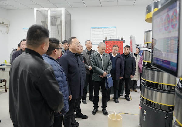 ?????????????????????????????????????????????談文勝一行近距離查看200噸全自動(dòng)智能抗壓強(qiáng)度系統(tǒng)。