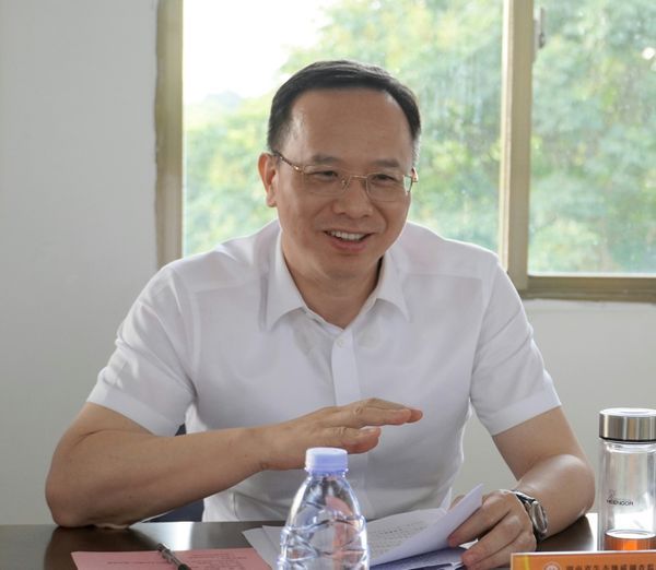 談文勝一行在藍山基地實地調(diào)研。