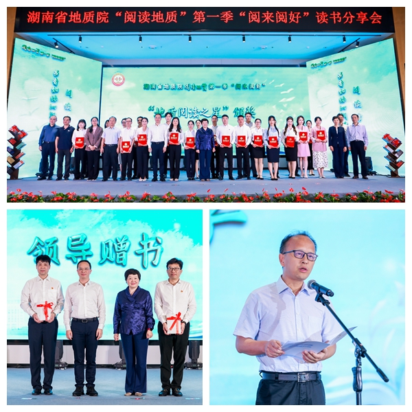 院黨委書記談文勝、院長張皓出席并為院屬單位代表贈(zèng)書。在家院領(lǐng)導(dǎo)為院屬各單位讀書協(xié)會(huì)推薦的首屆“地質(zhì)閱讀之星”頒獎(jiǎng)。省財(cái)政廳資環(huán)處處長劉見受邀到場作精彩分享并共同頒獎(jiǎng)。