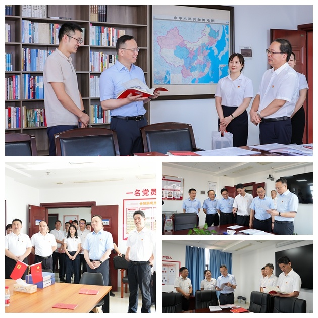 談文勝一行還實(shí)地走訪調(diào)研了4家單位基層黨支部工作開展情況,現(xiàn)場(chǎng)查閱了支部建設(shè)臺(tái)賬資料,了解了基層黨組織建設(shè)成果和黨紀(jì)學(xué)習(xí)教育等情況,參觀了黨員活動(dòng)室、黨建活動(dòng)陣地、黨建文化墻、黨建宣傳展板等。他強(qiáng)調(diào),院屬各單位領(lǐng)導(dǎo)班子成員要帶頭推動(dòng)黨建業(yè)務(wù)深度融合、講好紀(jì)律黨課、參加所在基層黨支部和聯(lián)系基層黨支部集中學(xué)習(xí)研討,帶頭做到學(xué)懂弄通、入腦入心,以黨員帶頭匯聚強(qiáng)大力量,以高質(zhì)量黨建引領(lǐng)湖南地質(zhì)事業(yè)高質(zhì)量發(fā)展。