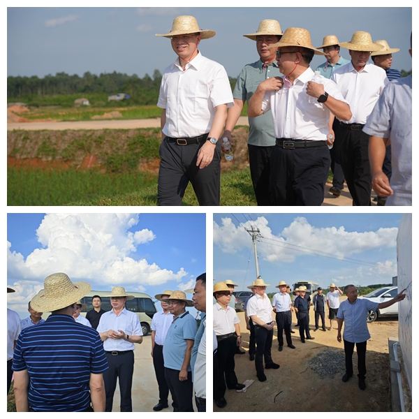 隨后,談文勝一行頂著烈日來(lái)到省水環(huán)所實(shí)施的??谑行阌^(qū)東山鎮(zhèn)東升村譚禮-美太坡土地整治項(xiàng)目現(xiàn)場(chǎng),向奮戰(zhàn)在一線的職工表示慰問(wèn)和鼓勵(lì),對(duì)項(xiàng)目團(tuán)隊(duì)克服重重困難、高效推進(jìn)項(xiàng)目建設(shè)給予充分肯定。談文勝對(duì)照工程布局圖,聽(tīng)取了項(xiàng)目施工情況匯報(bào),并查驗(yàn)田塊灌排系統(tǒng)、土層厚度和水泵房等情況。該項(xiàng)目立項(xiàng)規(guī)模574.68畝,投資金額為4412.68萬(wàn)元,預(yù)計(jì)增加耕地指標(biāo)519.2畝,其中新增水田指標(biāo)405.8畝,旱改水指標(biāo)113.4畝。通過(guò)科學(xué)規(guī)劃與精心實(shí)施,目前項(xiàng)目一期已順利通過(guò)驗(yàn)收,新增水田面積7.8831公頃,新增產(chǎn)能106421.85公斤;提質(zhì)改造水田面積6.7978公頃,新增產(chǎn)能10196.70公斤。項(xiàng)目的實(shí)施成功構(gòu)建了“田成方、路相連、渠相通”的現(xiàn)代化標(biāo)準(zhǔn)農(nóng)田格局,增強(qiáng)了區(qū)域灌排能力,對(duì)優(yōu)化農(nóng)業(yè)結(jié)構(gòu)、提升農(nóng)業(yè)綜合效益以及促進(jìn)農(nóng)民增收具有重要意義。