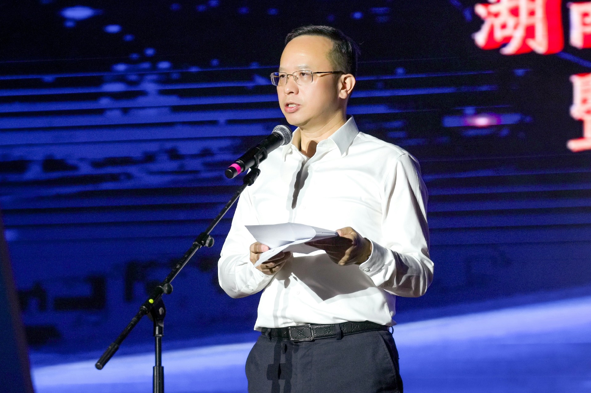 院黨委書記談文勝在致辭中表示,本次展演旨在紀念原子彈爆炸六十周年的熱血征程,謳歌薪火傳承的民族精神,緬懷地質前輩的卓越功勛,也標志著首屆“湖南地質文化周”正式拉開序幕。他指出,我們要賡續(xù)文化血脈。地質工作者留下了“三光榮”“四特別”的精神內核,要感悟他們堅定不移的執(zhí)著,聆聽他們戰(zhàn)天斗地的豪邁,追隨他們舍己為公的奉獻,昂首邁步湖南地質高質量發(fā)展新征程。我們要扎牢文化紐帶。地質文化是鐫刻在地質人心中的精神印記,要以鮮活的故事、生動的語言、多彩的符號,讓全院上下擰成一股繩、聚成一束光、融成一塊金,共同鑄就新時代湖南地質的不朽傳奇。我們要堅定文化自信。地質工作是探索未知、揭示真理的偉大征程,要進一步增強全院干部職工對地質工作的認同感、歸屬感和榮譽感,激揚地質人砥礪前行的昂揚斗志與輝煌未來。我們要厚植文化生態(tài)。要以文育人、以文促行、以文強院,把文化建設滲透到改革轉型發(fā)展各方面,融入到“一體兩翼三支撐”戰(zhàn)略全過程,共同演奏湖南地質壯美樂章。同時,他祝愿本次“湖南地質文化周”圓滿順利,祝福湖南地質院的明天更加美好!