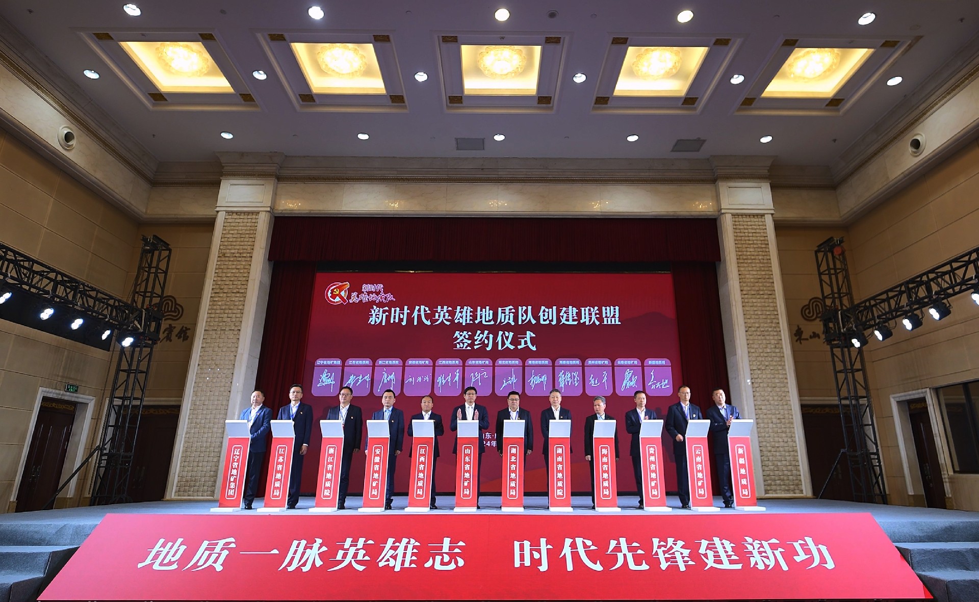 會議現場,12家國家功勛地質隊代表共同簽署新時代英雄地質隊創(chuàng)建聯(lián)盟戰(zhàn)略合作協(xié)議。聯(lián)盟將深入貫徹落實習近平總書記重要回信精神,共同加強黨的建設、改革發(fā)展、業(yè)務拓展、科技創(chuàng)新、人才培養(yǎng)、文化宣傳等方面的交流合作,以加強新時代英雄地質隊建設為抓手,推動新一輪找礦突破戰(zhàn)略行動取得更大成果,共同推動地礦事業(yè)高質量發(fā)展。