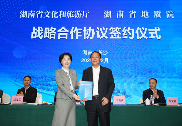 12月1日,全省旅游資源普查工作推進(jìn)會(huì)在長沙舉行。會(huì)上,省地質(zhì)院與省文旅廳簽訂戰(zhàn)略合作協(xié)議,省文旅廳向省地質(zhì)院遞交旅游資源普查任務(wù)書。中共湖南省委宣傳部副部長、省文旅廳黨組書記、廳長李愛武,省地質(zhì)院黨委書記談文勝見證簽約并講話。省文旅廳一級(jí)巡視員歐陽斌,省地質(zhì)院黨委委員、副院長劉擁軍作為廳、院代表簽約。