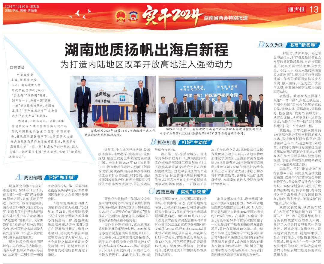 湖南地質(zhì)揚(yáng)帆出海啟新程,為打造內(nèi)陸地區(qū)改革開放高地注入強(qiáng)勁動(dòng)力